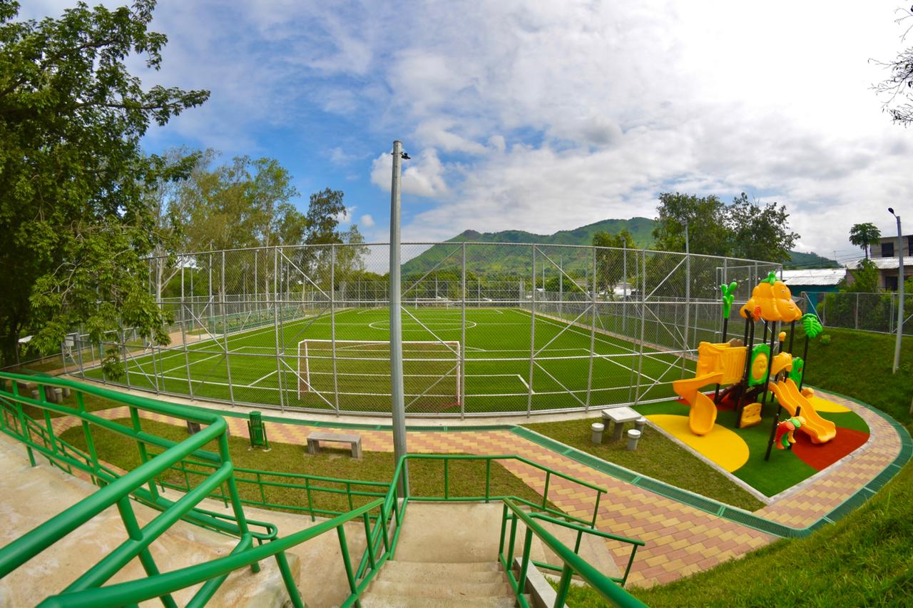 Secretaría de Comunicaciones de la Presidencia de la República de El Salvador informa que ahora los jóvenes de la colonia Santa Teresa de Las Flores, en Apopa, tienen un espacio de sano esparcimiento totalmente remodelado y de calidad, que reúne las condiciones adecuadas para la práctica del deporte y fomentar la sana convivencia en la comunidad.