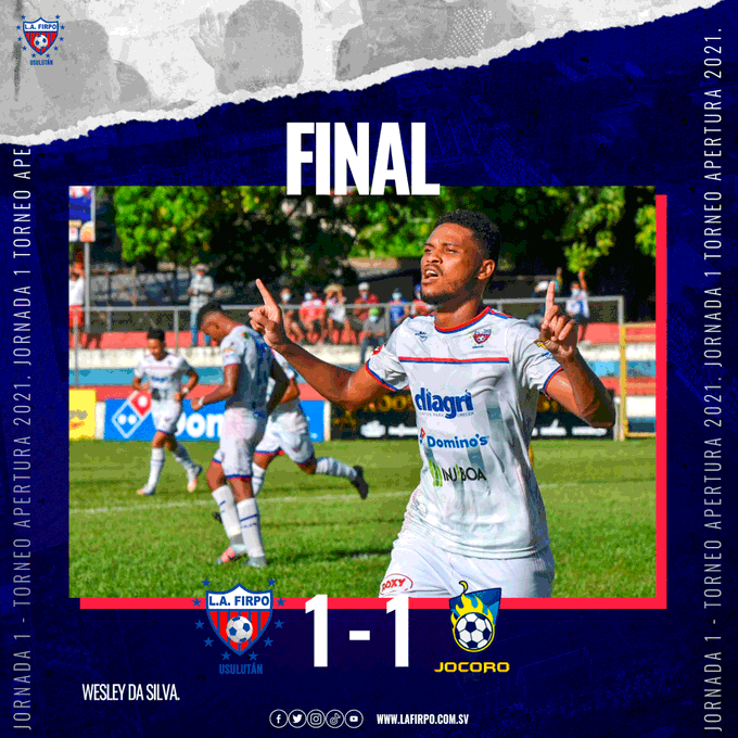 Firpo empató este domingo con Jocoro con un resultado de 1-1 en el estadio Sergio Torres Rivera, en un duelo de la primera fecha del torneo Apertura 2021. Anotaron Wesley Da Silva y José Salvador Galindo respectivamente.
