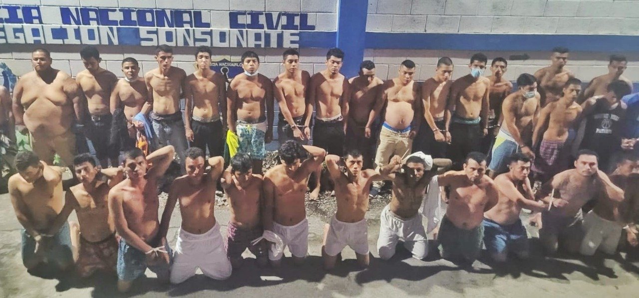 La Policía Nacional Civil (PNC) informó sobre la captura de «más de 60 terroristas en Sonsonate, entre ellos dos palabreros, quienes ordenaban homicidios, extorsiones, traficaban droga, entre otros delitos».