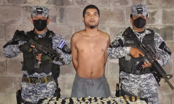 «Como resultado de incursión en el cantón Dolores Apulo, Ilopango, capturamos a pandillero de la MS-13, con 120 porciones de marihuana, $136 y dos celulares. Este sujeto es Daniel Chávez Solís. Será remitido por posesión y tenencia de droga», informó la PNC.
