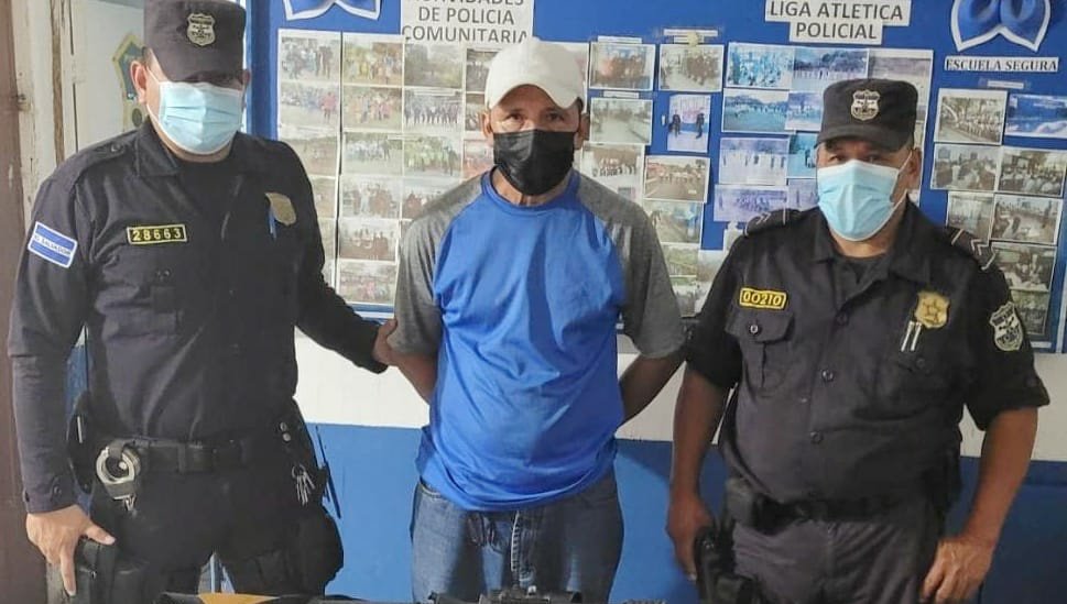 Usulután, la PNC captura a José Manio Molina, de 56 años, por portación ilegal de arma de fuego, a quien se le incautó: -Un arma de fuego tipo fusil con cargador y seis cartuchos -35 cartuchos 9 mm -Dos cargadores 9 mm -Un vehículo