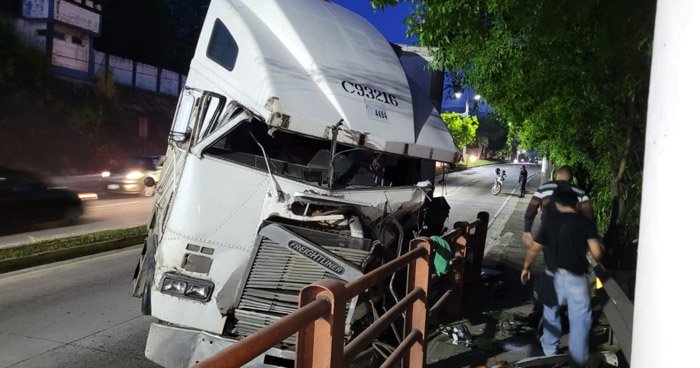 Según el informe policial, el conductor de la rastra perdió el control, impactó contra un poste del tendido eléctrico y finalmente cruzó al sentido contrario impactando contra una valla de seguridad.