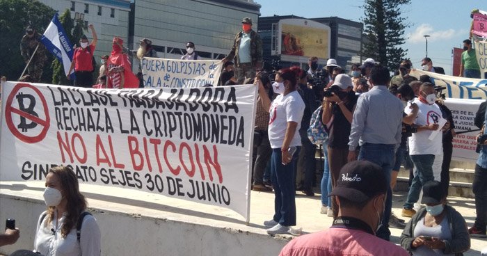 En diferentes puntos del país, salvadoreños se concentraron esta mañana de martes para protestar contra la entrada de vigencia del Bitcoin.