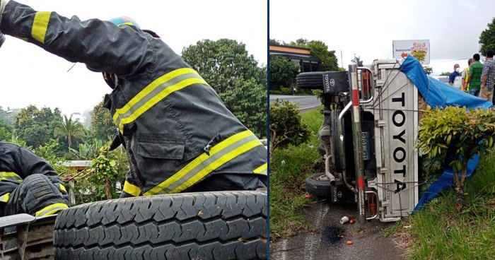 Bomberos detallaron que en el vehículo se conducían tres personas quienes resultaron lesionadas, las cuales fueron trasladadas a un centro asistencial.
