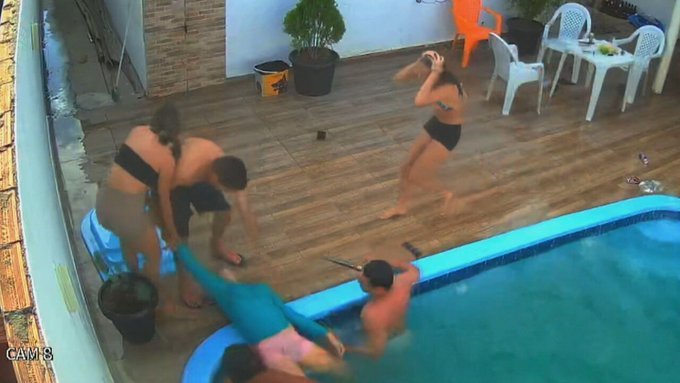 “Estaba bromeando. Fui a peinarme, puse las piernas sobre el borde y me acosté. Cuando di vuelta adentro era para subir, ya me estaba quedando sin aire. Sentí que algo tiraba de él”, dijo Maria Rita Pimentel da Cunha, de 13 años al medio O Globo.